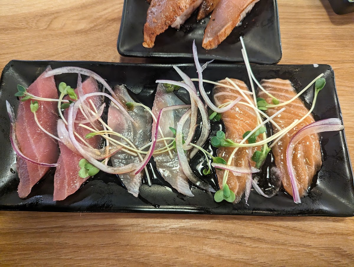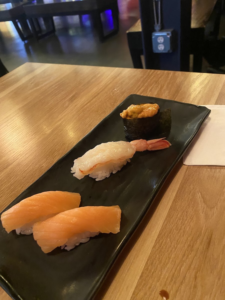 So normally when I am in town I have a vehicle. This time I chose not to get one as I was staying downtown so I figured I could walk to a lot of places and I am here to relax. But one of my favorite things about coming to Vegas is all the sushi places. I have my favorite but they are over in china town , so I figured I would try out a spot closer to my hotel and Fremont St. I saw that this place has a lot of good reviews so I figured I would try it out. I have to say I like the decor inside lots of wood and I really like the light over the long table in the middle of the place, the paper lanterns really add to the ambiance. I tried out four different rolls and quite a few of the nigiri sushi. Some of my favorites were the hamachi nigiri, masago nigiri, smoked salmon nigiri, the surf clam was good. The tuna was also good. Really liked the Long Island Roll. So for Fremont street it is convenient and good. The service was excellent, the waitress was quick and friendly the chefs were fast. The ingredients were good, the only thing was a guy sitting at the end of the bar. After a while I guess he was a manager or owner and just seemed to make the employees a little uncomfortable. Other wise the food was good, service was great and has a nice ambiance. If you're staying downtown it is very convenient especially if you don't want to take a taxi or ride share to somewhere off the strip.